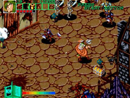 Players move through scrolling playfields to destroy fantasy bosses such as dragons. Some of the playfields even have treasure chests that contain magic items such as boots of speed.