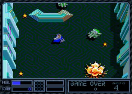 Take control of a futuristic tank and fight your way past waves of enemy tanks, artillery batteries, lightning rods, acid spills, and more. Reach the nuclear reactor and grab what you can before it blows up. Go to the tech shop and buy weapon upgrades, shields, speed bonuses, and more. Controls for this game resemble BattleZone.