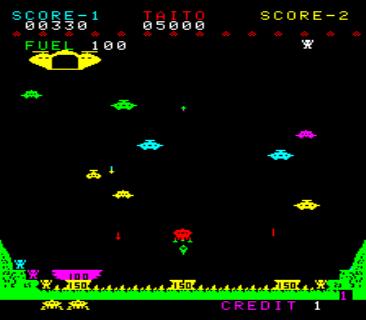 Guide your ship down to a plateau to rescue survivors and take them back up to your mothership. You must avoid asteroids on the way down and bomb dropping spaceships on the way up. You have limited fuel supply and three lives.