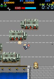 Terrorists have taken Super Joe's family and a number of townspeople hostage. You must drive your gun-equipped car through dangerous streets to free the hostages and collect power-ups. If your vehicle is severely damaged, you may jump free and continue to fight on foot.