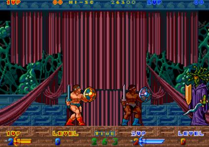 player is able to swing Rastan's sword in multiple directions. By