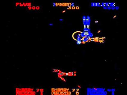 Up to three people can participate in this game and each player's character has a different color: red, yellow or blue. All player characters are equipped with standard firepower and a special weapon. During each level, all enemies must be destroyed in order to advance to the next. The player character changes name and likeness and receives a new special weapon between levels if all the enemies have been destroyed. The character names and special weapons include Flux, magnet; Tangent, shield; Rebound, boomerang; Kelvin, freeze ray; and Blitz, heat-seeking grenades. Each time a character is damaged, his energy is decreased but there are energy units on each stage that can be collected for additional energy. If a character is destroyed, the player's game ends, but continuous play is still available.