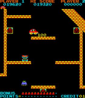 The player controls a VW Beetle that jumps through eight scenarios collecting money and jewels. Shoot or avoid the enemies.