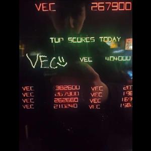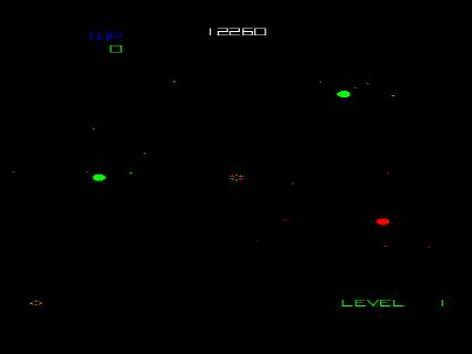 Enter a subatomic world. Using the trackball, capture particles by circling them with your probes tail. Player surpassing the high score gets to "draw" his name with the trackball.