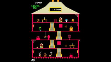 There are two versions of this game - one on original hardware where the games logo displays on top of the house during attract mode with a 1983 copyright date. The other version with a 1984 copyright runs on Pac-man hardware with major graphical differences.