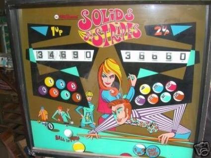 On '8 Ball', the billiard balls have to be earned in numerical sequence so it made sense for that game to use for each player a sequential mechanism such as a stepper unit with reset coil. Because the billiard balls on 'Solids N Stripes' can be earned in any random order, it makes sense to use a relay bank which will track them in any order in which they are earned. The two relay banks were mounted under the upper portion of the playfield and, with their associated relays, reportedly made the playfield unusually heavy to remove from the game.