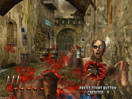 The sequel to the original "House of the Dead". The graphics are smoother and the gameplay is faster. The type of gameplay is the same as before though. You are still armed with a pistol and you must still save innocent bystanders to gain extra health and alternate passageways. A boss character lies at the end of each stage. Shoot it's weak point to defeat it. In this version, the enemies are smarter and more creative. This game came in both a standard upright version and a walk-in, sit-down, man-cave deluxe edition which really brings out the eerie darkness theme and makes the music and sound effects more effective.