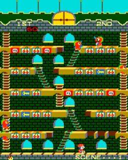 As in Mr. Do!, the player can earn an extra life by collecting all of the letters from the word "EXTRA". Regular monsters can be changed into monsters bearing the EXTRA letters by collecting all three keys distributed around the playfield and then picking up a magic shield from the top floor. Monsters in this state are easier to defeat than normal; a simple hammer strike will do the job. After a brief interval, they change back into their normal forms. The game also offers a bonus credit for collecting a rare diamond that appears on the playfield at random intervals.