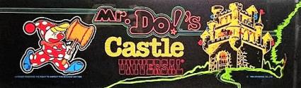 The object of Mr. Do's Castle is to score as many points as possible by collecting cherries and defeating unicorn-like monsters. The game takes place in a castle filled with platforms and ladders, some of which can be flipped from one platform to another. The player controls Mr. Do as he collects cherries by using a hammer to knock out blocks that contain them from the various platforms. Empty holes left by the knocked-out blocks serve as traps for the monsters - if a monster falls into a hole, the player can then defeat it by causing a block above the monster to fall on top of it. If the player takes too long to complete a level, the monsters transform into faster, more difficult forms that occasionally multiply. The game advances to the next level when all cherries on the level have been collected or all enemies have been defeated. The player loses a life if Mr. Do is caught by a monster, and the game ends when the player runs out of lives.