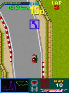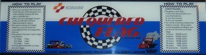 Chequered Flag is an overhead-view racing game featuring rotational sprite scaling. The player races over a series of twisting courses, trying to reach the finish line before the timer expires. The game includes a Pit-stop facility, a feature that had appeared a year earlier in Taito's "Continental Circus". Should the player's car sustain too much damage, a pit-stop must be made to implement repairs. A 'damage meter' at the bottom of the screen shows the severity of the damage; highlighting what car components are in need of repair; Engine, Front Tires, Rear Tires and Brakes.