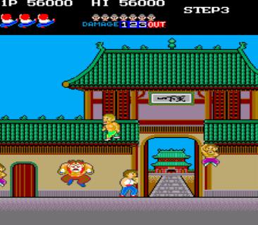 Kung-fu player jumps around multiple level boards, kicking opponents, and collecting power-ups and bonus items. Player defeats, by way of five kicks, the board "boss" and advances to the next level.