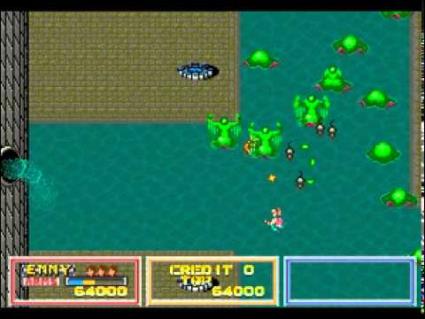 A run and gun dual joystick shooting game, similar to Total Carnage up to three players can transverse the level with enemies flooding the screen from all sides. Helping the player fight off the hordes are power up stations that upgrade the power of your gun that gives you faster and stronger firepower.