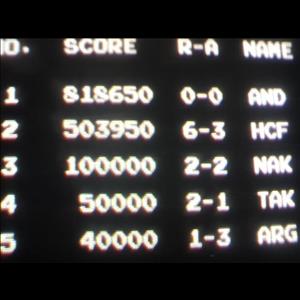 The sequel to Bosconian only released in Japan, but instead of free-roaming this is a vertical scrolling shooter. The player controls a ship, facing the top of the screen, that can move freely while the background scrolls down, bringing enemies into view; the player may destroy enemies for points. The game uses two buttons - one is used to make the ship fire circular lasers, while the other is used to cycle through its four firing patterns. The red pattern is two lasers in a spiral pattern, while the blue one is one laser straight ahead and one behind, the yellow one is one laser straight ahead, one left, and one right and the green one is two lasers diagonally forward (one to the left and one to the right), and one straight behind; by holding down the button, the ship fires more powerful, spherical lasers.