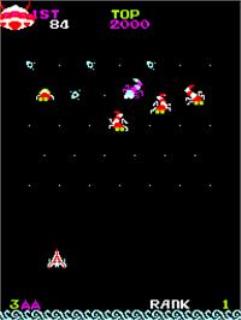 Shoot larvae and grubs dropping from a UFO. Missed larvae will spin cocoons and when a total of seven hatch, they turn into Ultramoths that swarm against your ship. Destroy all the bugs on the screen to increase your rank.